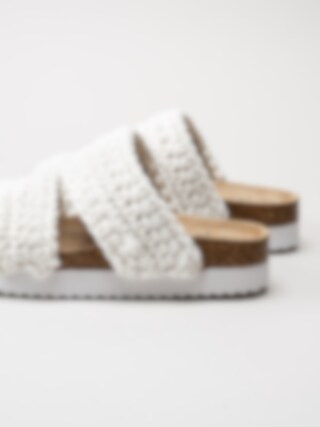 Duffy - Vita slip in sandaler i grovt virkad textil