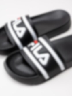 Svarta sandaler med logga från Fila. Sköna slip in sandaler tillverkade i syntet. Perfekta till sommmaren!