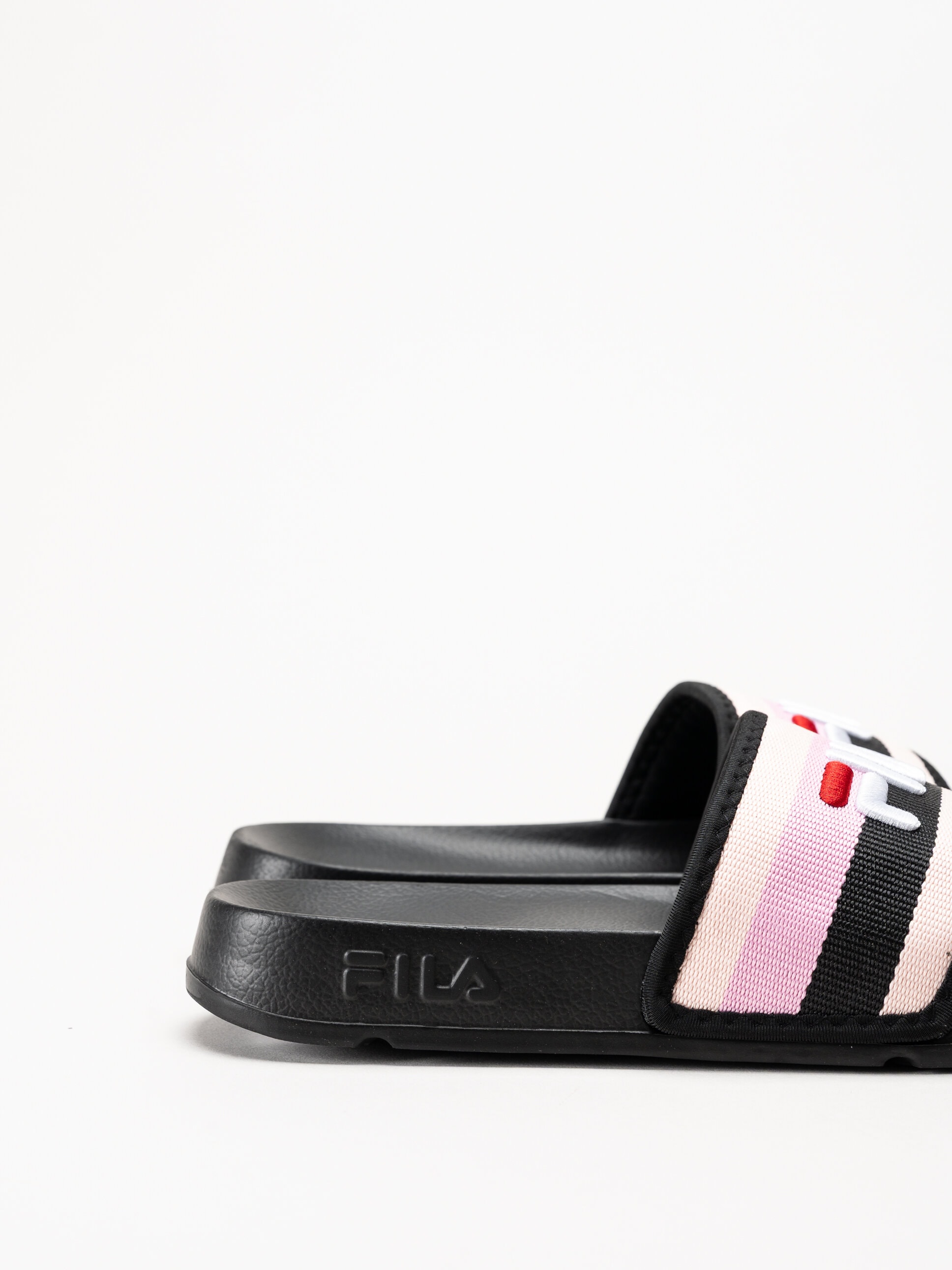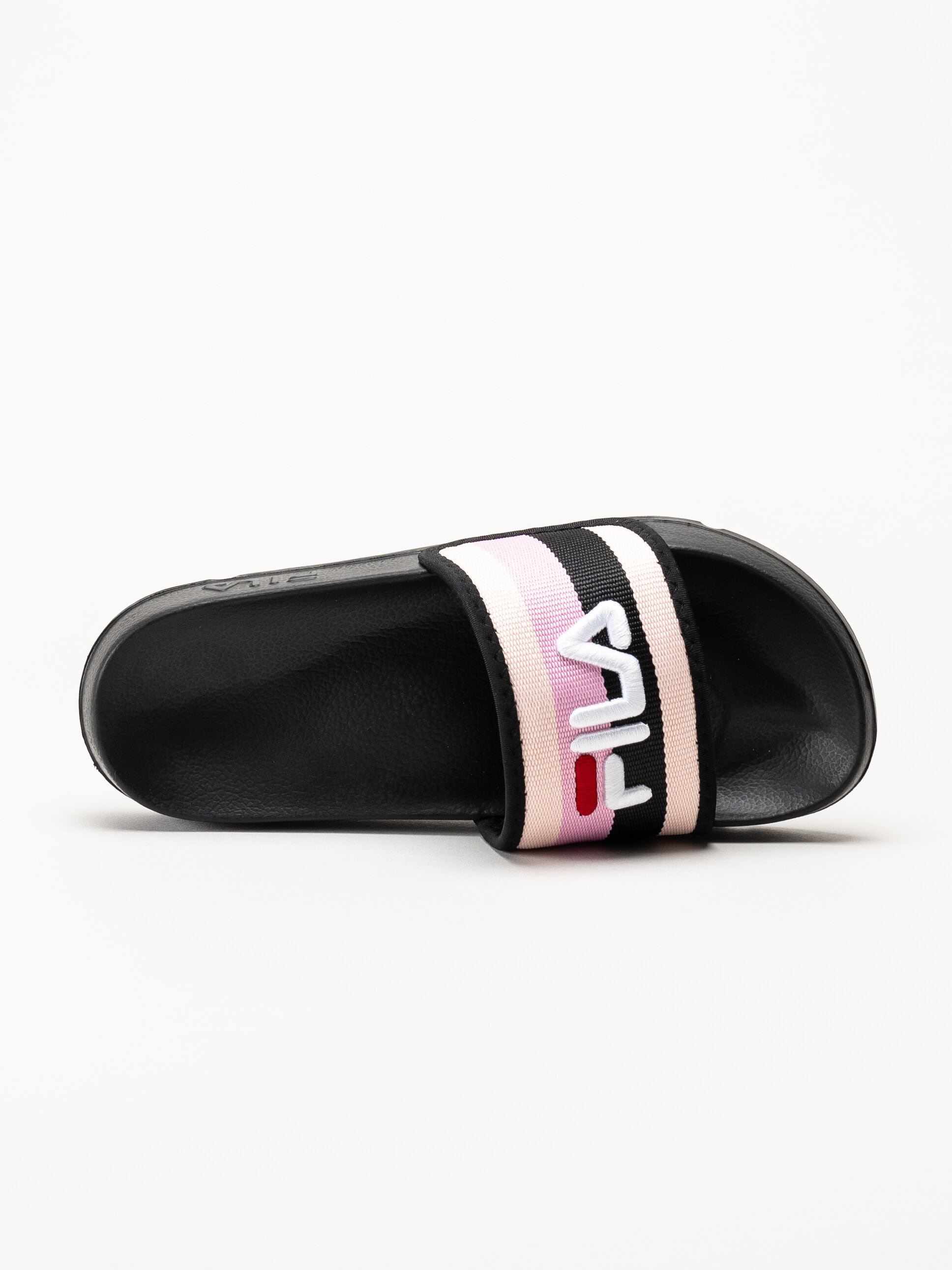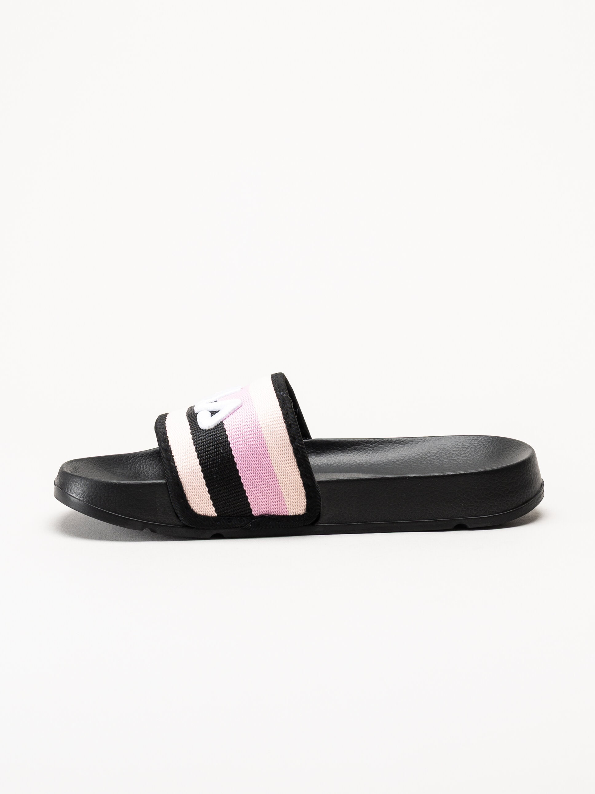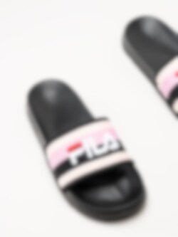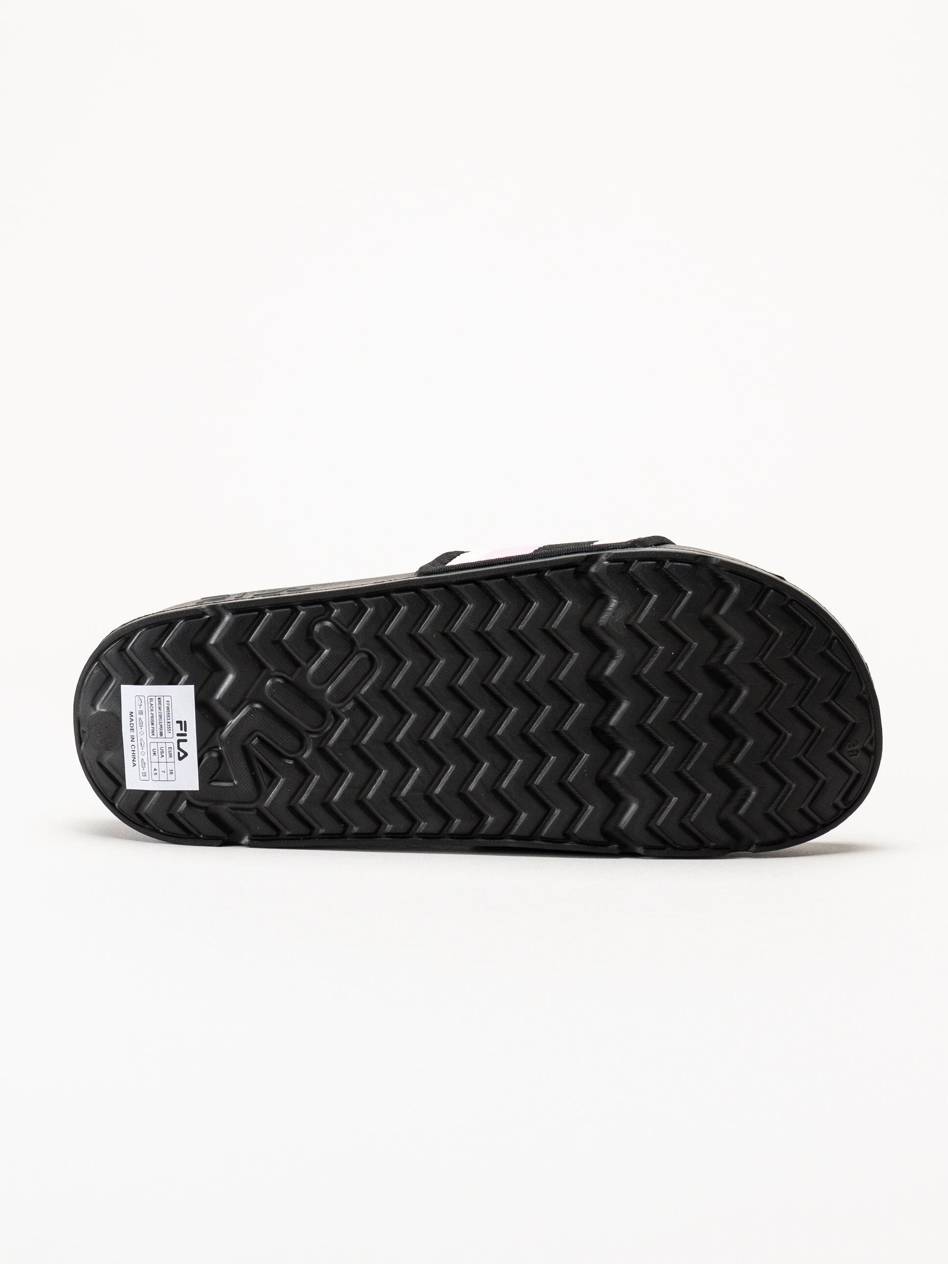 Svarta sandaler Morro Bay från Fila med en sportig och avslappnad design. Ovandelen är tillverkad i textil och har rosa detaljer som ger ett färgstarkt och modernt uttryck. Modellen har en öppen och lätt konstruktion som gör sandalerna enkla att ta på och av samt bekväma under varma dagar. Invändigt är sandalen fodrad med textil, och innersulan i syntet bidrar till en mjuk och behaglig känsla vid varje steg.