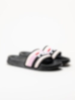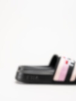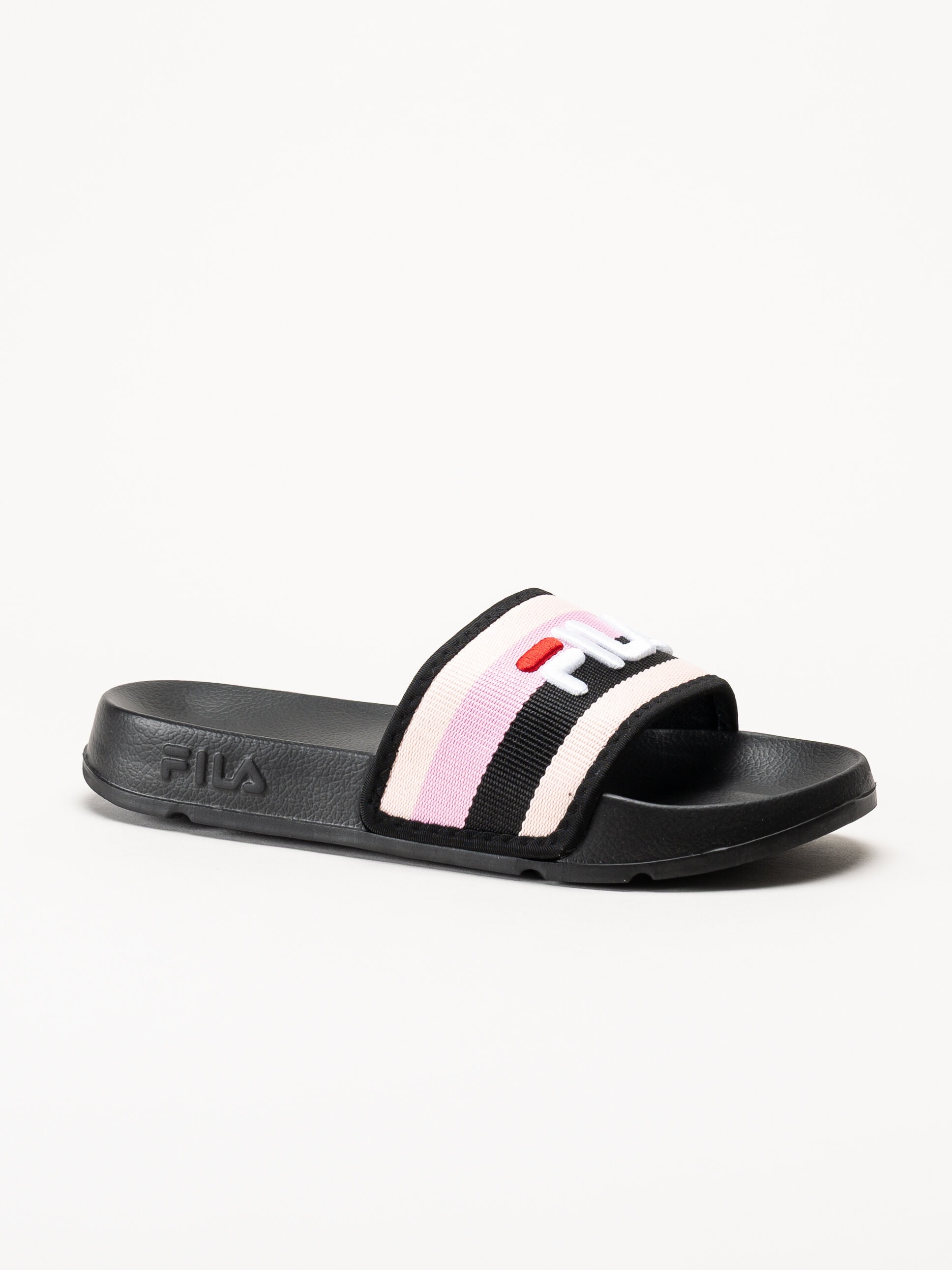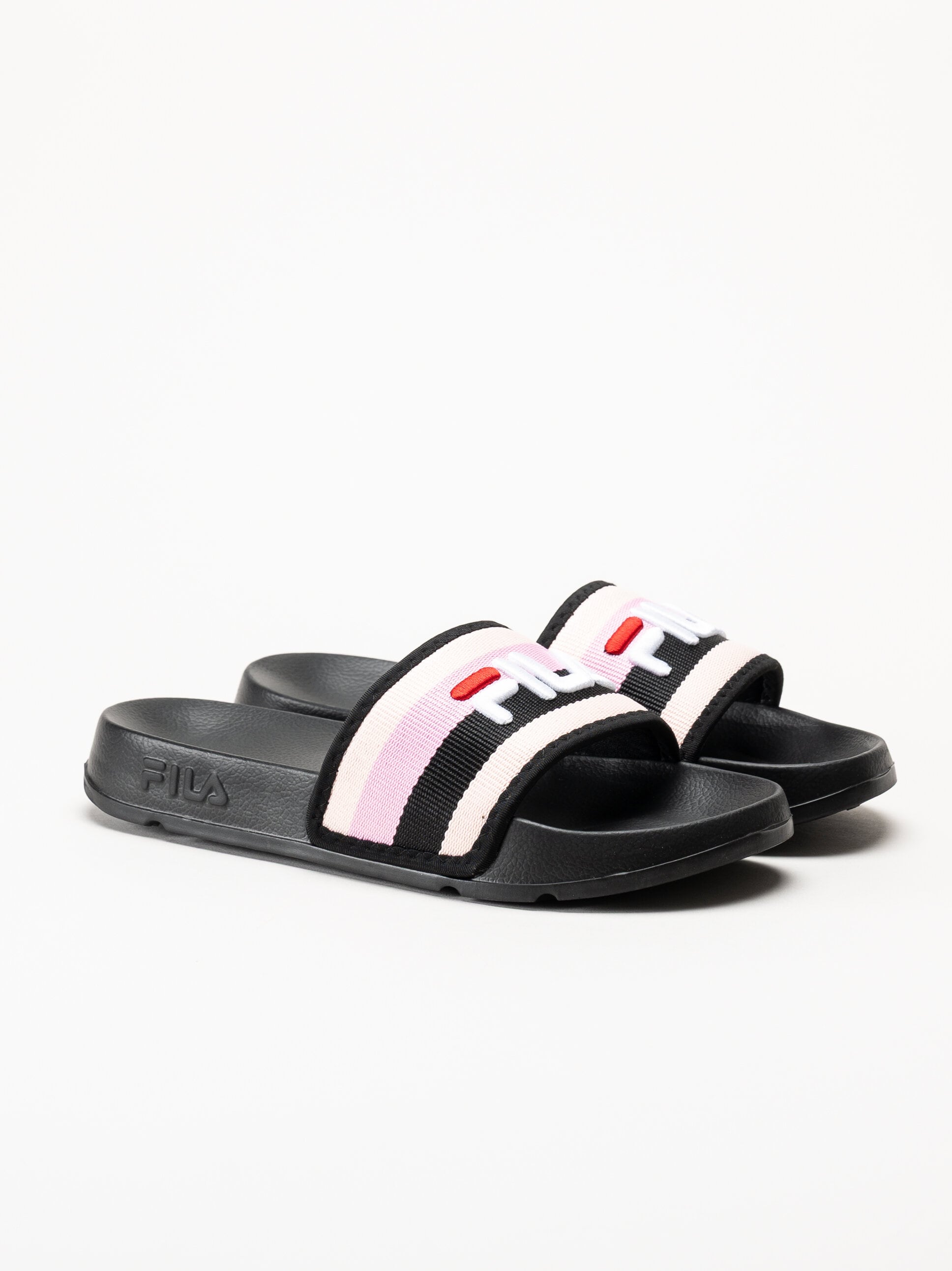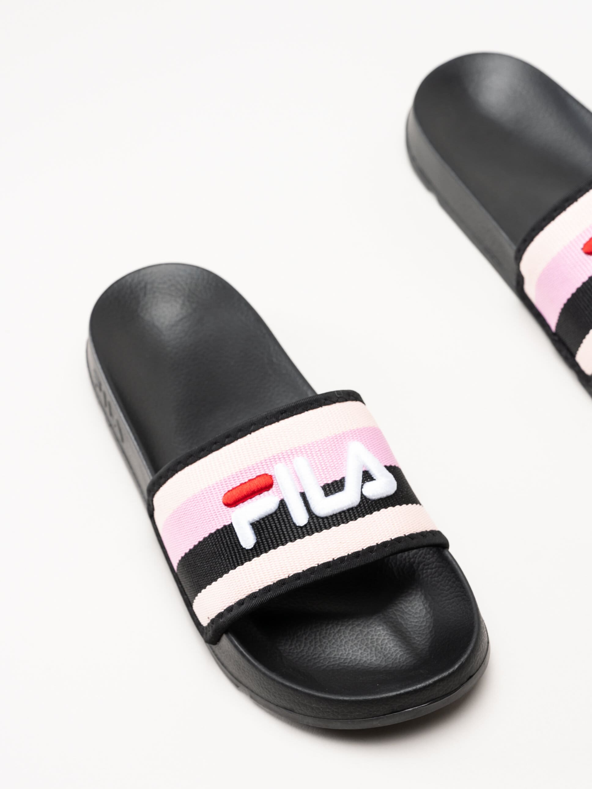 Svarta sandaler Morro Bay från Fila med en sportig och avslappnad design. Ovandelen är tillverkad i textil och har rosa detaljer som ger ett färgstarkt och modernt uttryck. Modellen har en öppen och lätt konstruktion som gör sandalerna enkla att ta på och av samt bekväma under varma dagar. Invändigt är sandalen fodrad med textil, och innersulan i syntet bidrar till en mjuk och behaglig känsla vid varje steg.