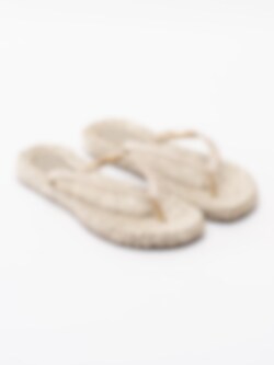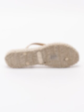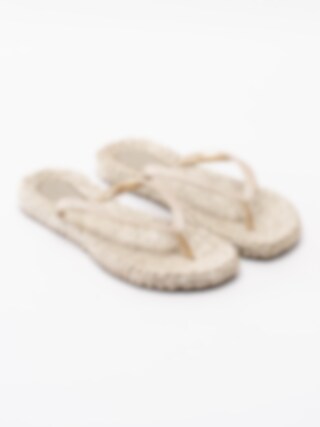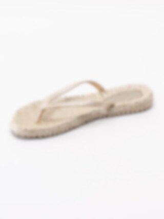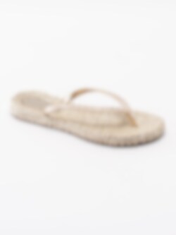 Guld flip flops sandaler Cheerful från Ilse Jacobsen tillverkade i syntet. Glittriga remmar som sitter ihop med tåspridaren för att hålla sandalen kvar på foten. Mönsterflätad, mjuk innersula i syntet för ökad komfort med konturerad logga i hälen. Låg platåsula på ca 2 cm. Guldig yttersula i syntet med konturerade loggor.