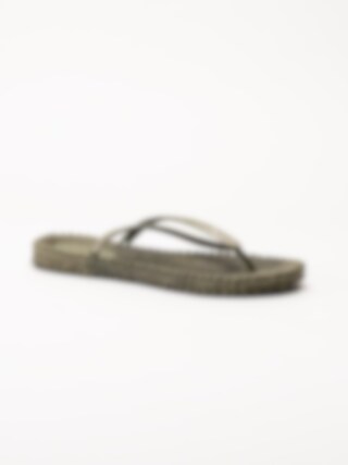 Gröna flip flop sandaler Cheerful från Ilse Jacobsen tillverkade i syntet med dekorativa glittriga remmar. Mönsterflätad, mjuk innersula i syntet för ökad komfort med konturerad logga i hälen.