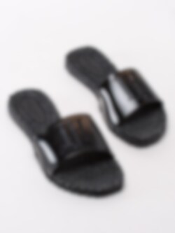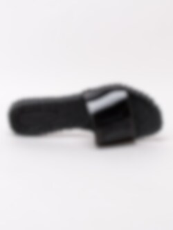 Svarta slip in tofflor Cheri från Ilse Jacobsen tillverkade i syntet. Mönsterflätad, mjuk innersula i syntet för ökad komfort med konturerad logga i hälen. Enkel påtagning genom att bara sätta in foten. Svart yttersula i syntet med konturerade loggor. Passar perfekt till soliga sommardagar!