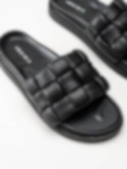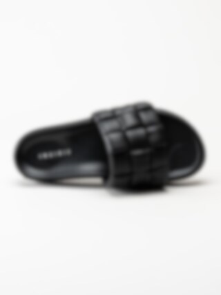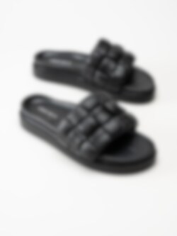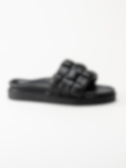 Svarta slip in sandaler Braided leather i skinn från Inuikii. Trendiga slippers i schackrutigt flätat skinn.
