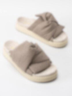 Ljusbeige slip in sandal Knot Lino från Inuikii i textil. Trendig slip in sandal med en bred vadderad rem med knutdetalj i linnekänsla. Innersulan är skönt fotformad och mockaklädd vilket ger en bekväm känsla och komfort. Blir riktigt snyggt till ett par byxor i linne, en sommarklänning eller varför inte ett par blåa jeans. Dessa sandaler vill du inte missa.