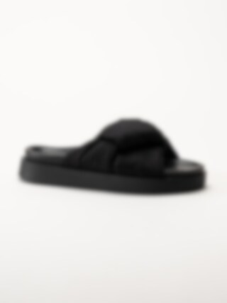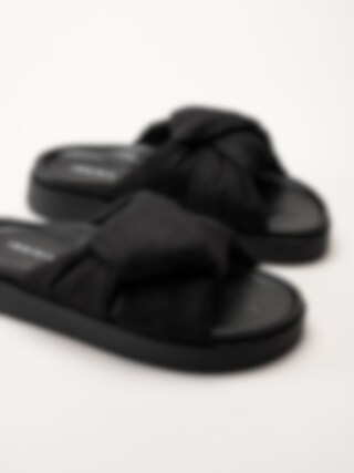 Svarta slip in sandaler Oversized Linen Knot från Inuikii i textil. Trendig slip in sandal med en bred vadderad rem med knutdetalj i linnekänsla. Innersulan är skönt fotformad vilket ger en bekväm känsla och komfort. Blir riktigt snyggt till ett par byxor i linne, en sommarklänning eller varför inte ett par blåa jeans. Dessa sandaler vill du inte missa.