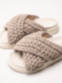 Inuikii - Woven - Beige slip in sandaler i grovt virkad textil
