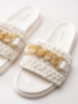 Inuikii - Woven Chain - Vita slip in sandaler i textil