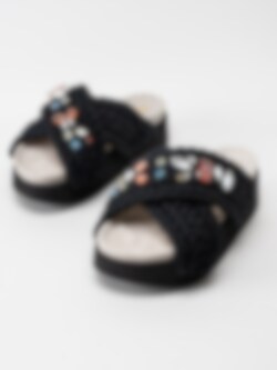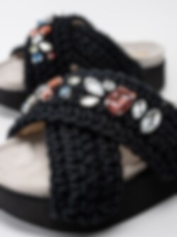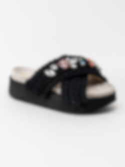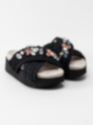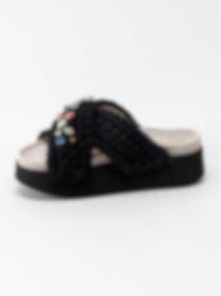 Inuikii - Woven Stones Platform - Svarta trendiga platå slip in sandaler med vackra stenar