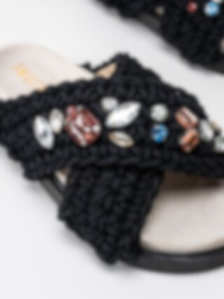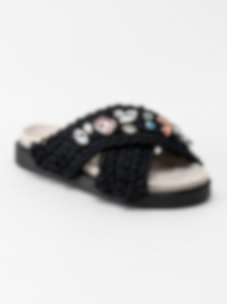 Inuikii - Woven Stones - Svarta trendiga slip in sandaler med vackra stenar
