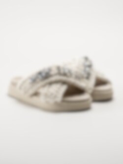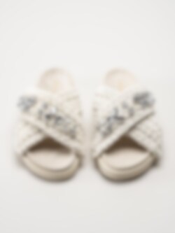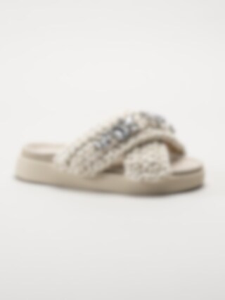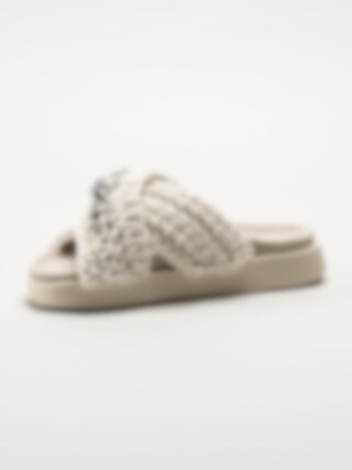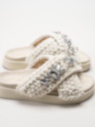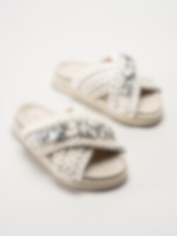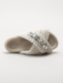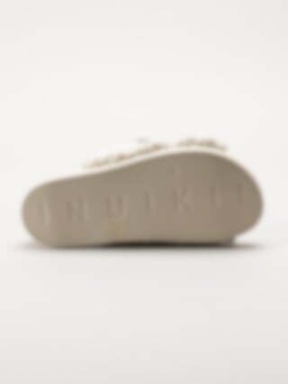 Inuikii - Woven Stones - Vita slip in sandaler i grovt virkad textil