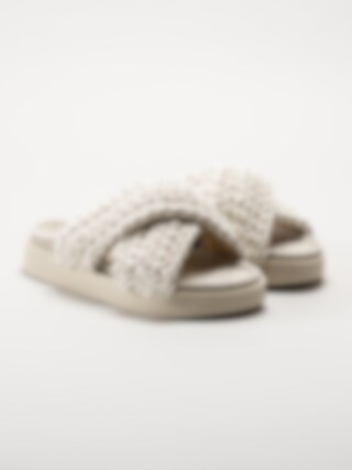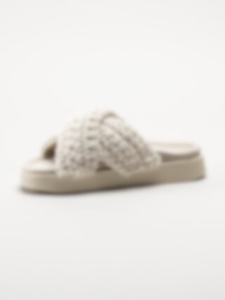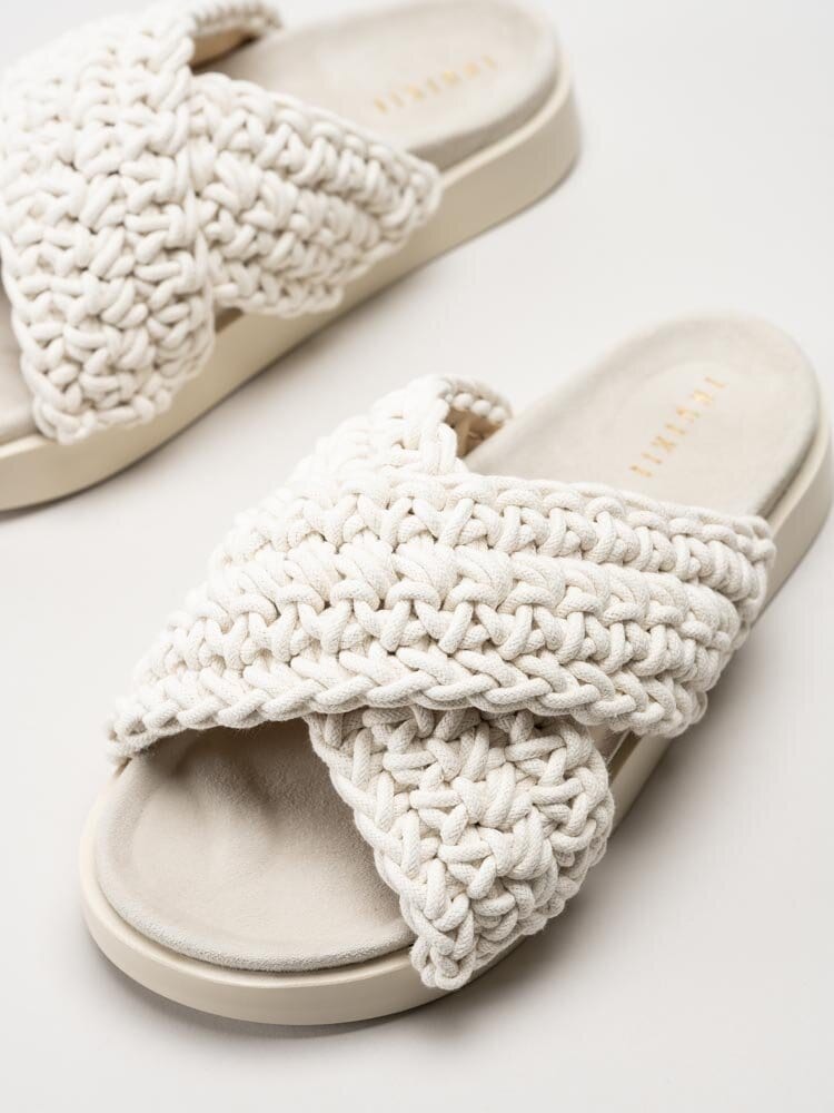 Inuikii - Woven - Vita slip in sandaler i virkad textil