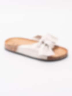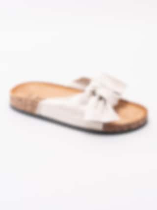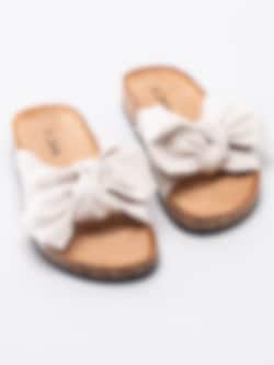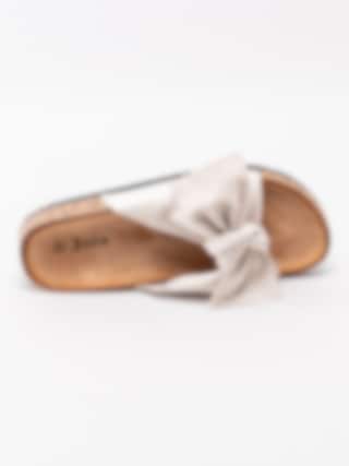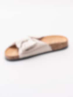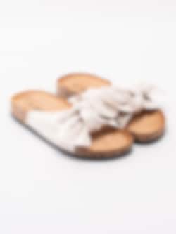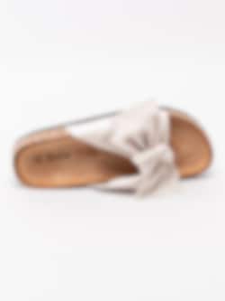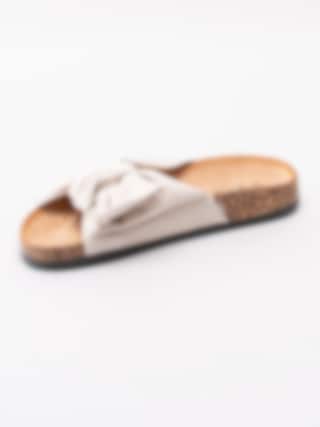 Ljusa beige slip in sandaler från Joia tillverkade i textil med stor rosett. Lätta sandaler och enkla att ta på. Ljust foder och beige innersula i textil med sömlös logga i hälen. Mellansula i korkimiation med upphöjd kant. Mörkbrun yttersula i syntet mönster och präglad logga i mitten.