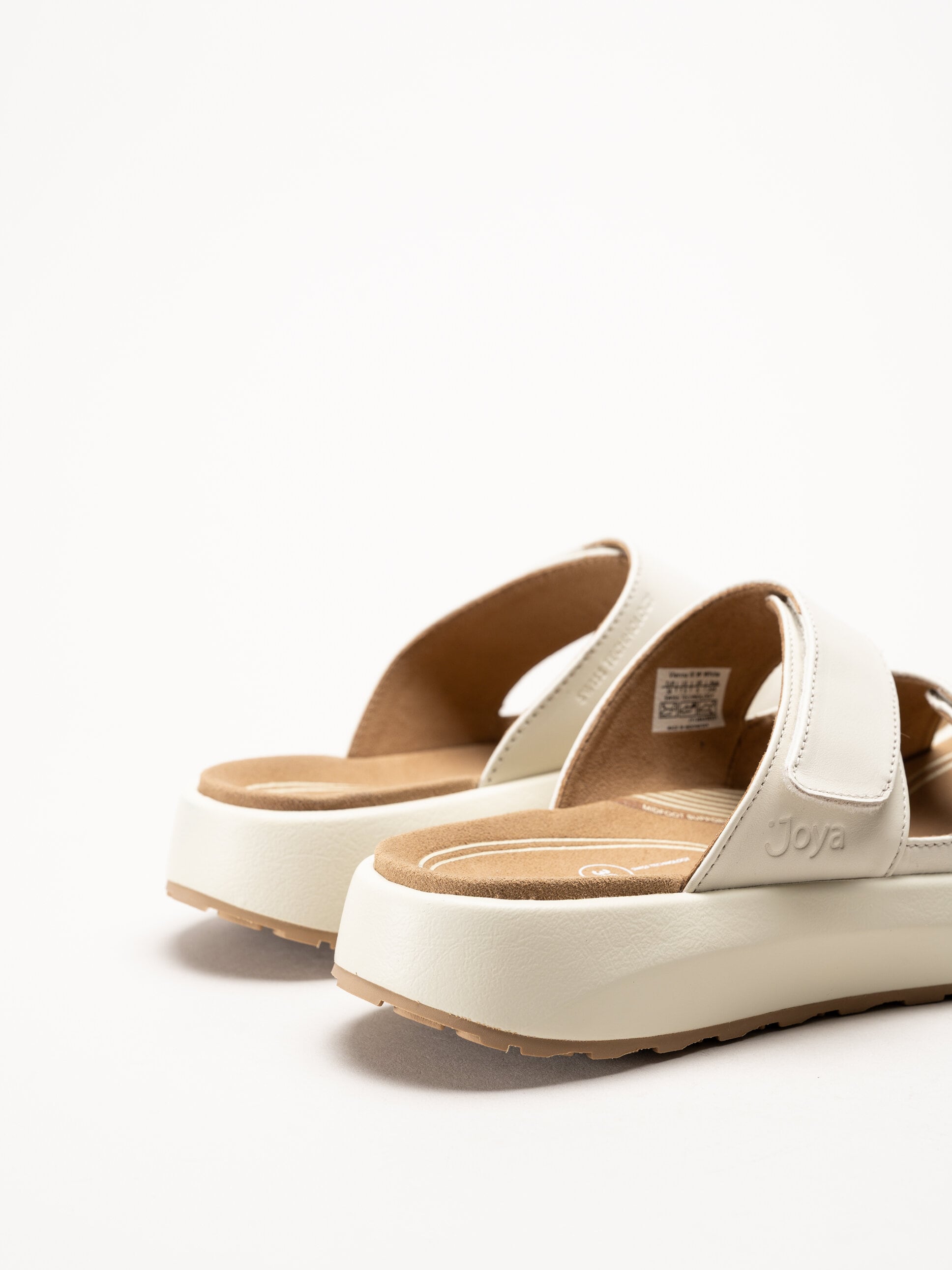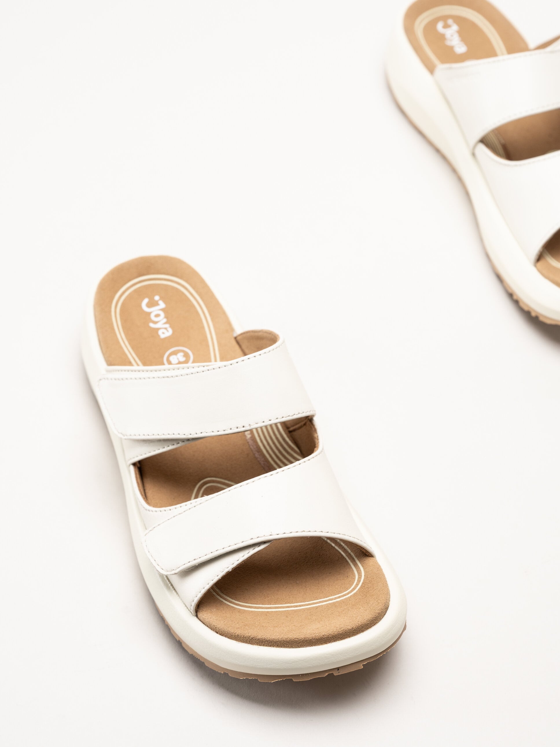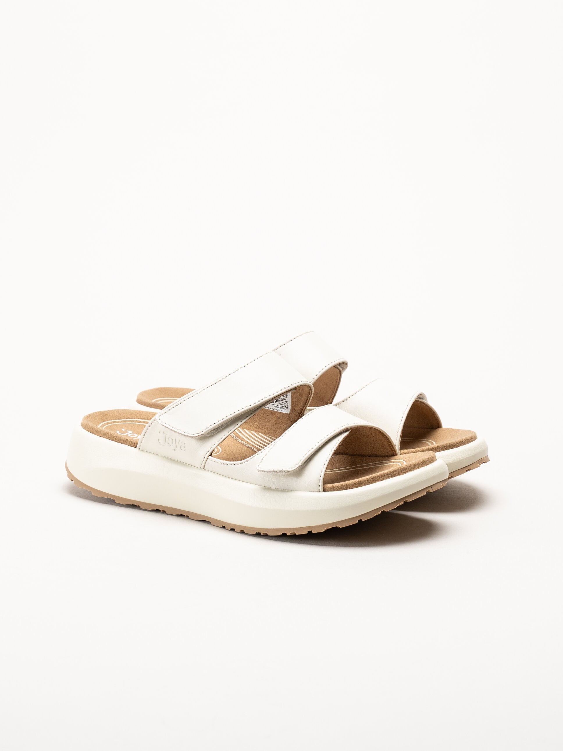 Off white sandal i skinn från Joya. Sandalerna är tillverkade i mjukt skinn med följsam känsla, vilket ger en stilren och praktisk design som lämpar sig lika bra för vardagsbruk som för längre dagar på fötterna. Invändigt är modellen fodrad med textil för en behaglig känsla mot foten, och innersulan i textil bidrar med mjuk komfort och stöd under hela dagen. Med Joyas Swiss Technology får du en ergonomiskt uppbyggd sula som ger effektiv stötdämpning, avlastar leder och rygg samt främjar ett naturligt steg.