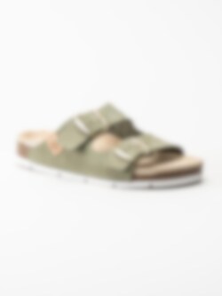 Gröna slip in sandaler i mocka från Rohde. Ett par klasssiska remsandaler med två justerbara remmar och guldspännen. Foder av textil och innersula av mocka. Yttersula av gummi. Perfekta skor till sommaren och passar bra inomhus som utomhus!
