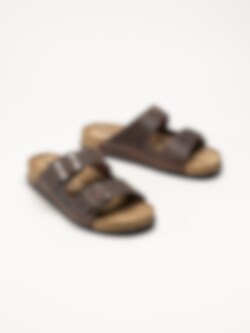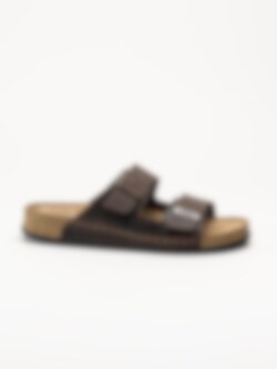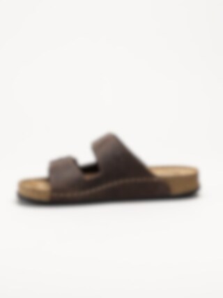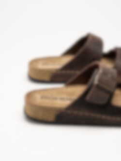 Mörkbruna slip in sandaler H. Soave från Rohde i färgen Mocca. Sandalerna är tillverkade i oljat skinn som ger ett naturligt och rustikt uttryck samtidigt som materialet är slitstarkt och följsamt. De två justerbara remmarna med spännen gör det enkelt att anpassa passformen efter foten för optimal komfort.
