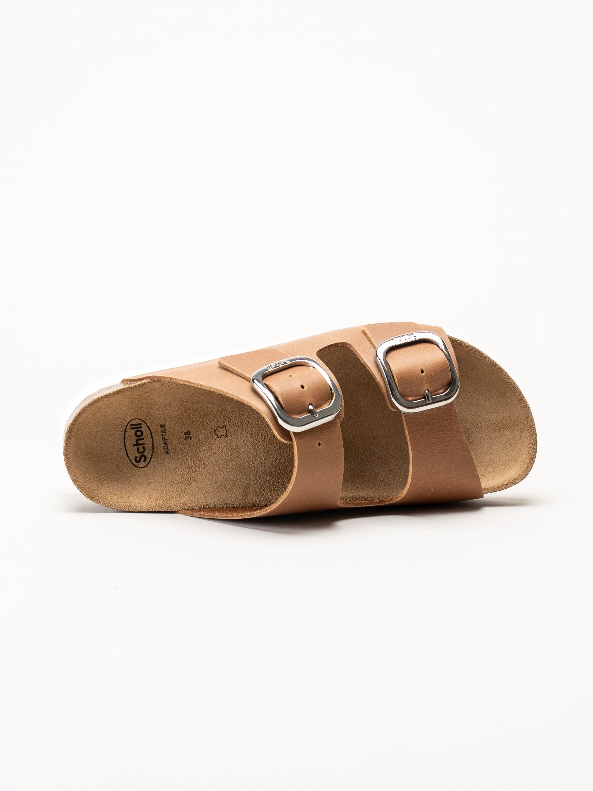 Bruna sandaler i oljat skinn Ilary 2 Strap i färgen Cognac från Scholl med en stilren och komfortfokuserad design. Ovandelen är tillverkad i oljat skinn som ger ett följsamt och elegant uttryck. Modellen har två justerbara remmar med spännen som gör det enkelt att anpassa passformen efter foten.