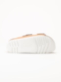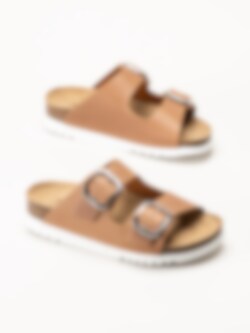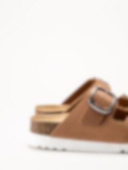 Yttersulan i syntet ger bra grepp och stabilitet. En bekväm och stilren sandal som passar perfekt för både vardag och längre dagar på fötterna.