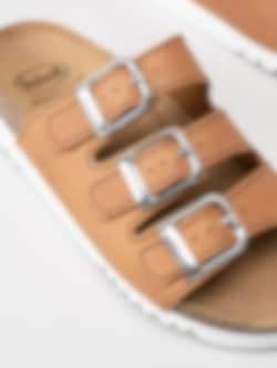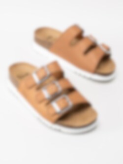 Scholl - Rio Ad Wedge - Bruna slip in sandaler med tre remmar