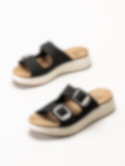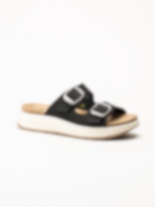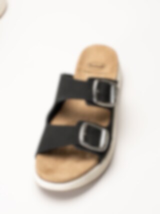 Scholl - Scilla 2 Buckles - Svarta sandaler i nubuck