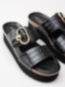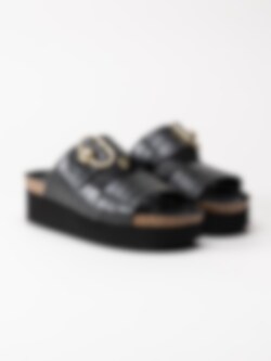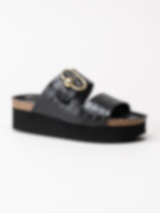Sweeks - Hedda buckle Croco - Svarta slip in sandaler i skinn