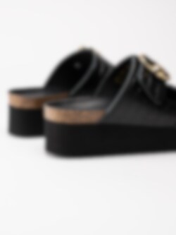Svarta slip in sandaler i skinn Hedda från Sweeks. Snygga och trendiga sandaler med platåsula för den modemedvetna kvinnan som vill ta sig an sommaren med stil. Styla med en lång sommarklänning och stora solglasögon för en chic look. Ofodrade och vadderad mjuk sula i mocka med svart läderlapp med logotyp i hälen. Svart platåsula med klack på ca 4 cm och platå på ca 2 cm i ett lätt material i skinn. Passar lika bra inne som ute.