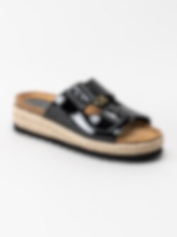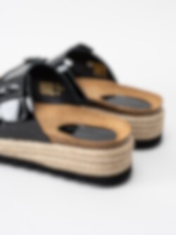 Sweeks - Sonja - Svarta slip in sandaler i lack med repklädd sula