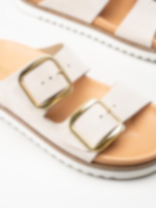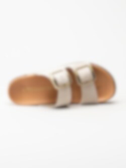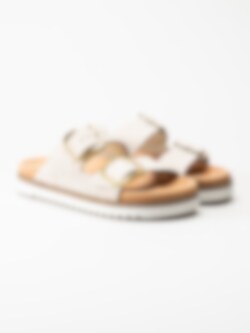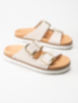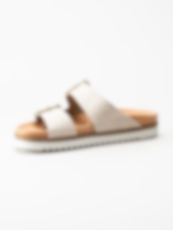 Beige slip in sandaler i nubuck från Tamaris. Sköna tofflor med foder i textil och innersula i läder för att erbjuda en behaglig känsla mot dina barfotafötter. Klassiska tofflor - perfekt slip in modell under sommaren eller varför inte som inneskor på jobbet?