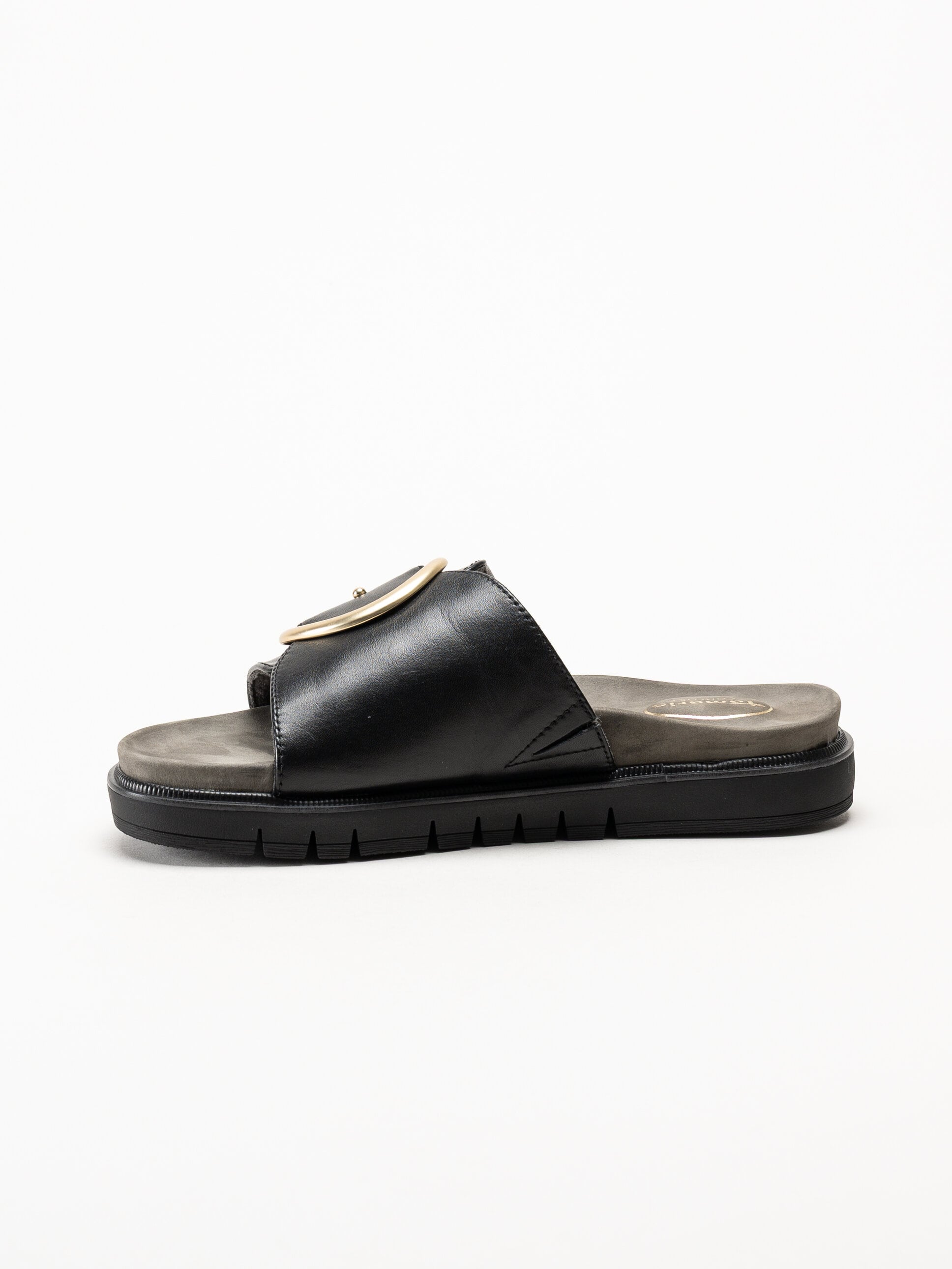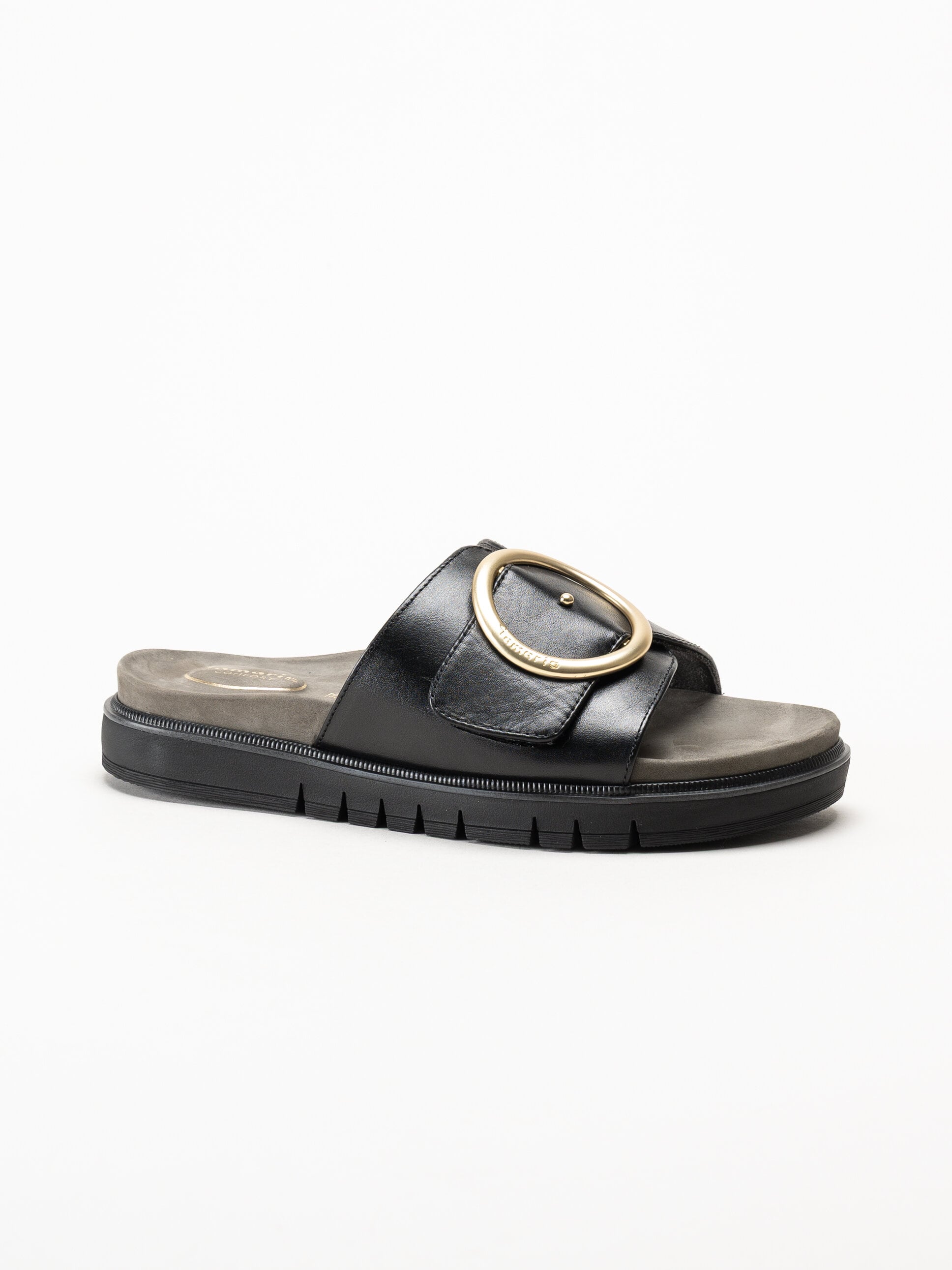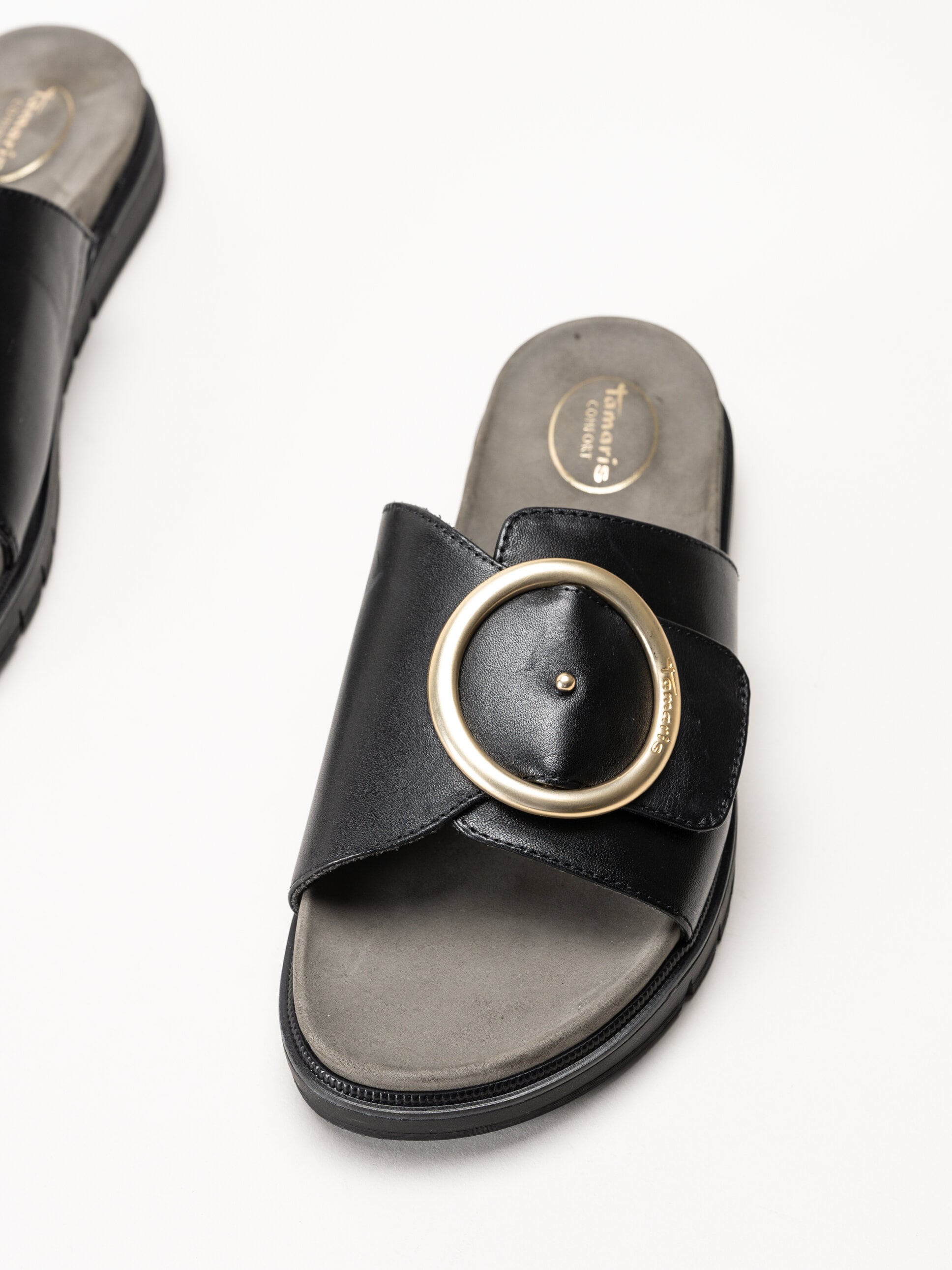 Svarta sandaler i skinn i färgen Black Nappa från Tamaris. Sandalerna är tillverkade i mjukt och följsamt skinn som ger ett stilrent och tidlöst intryck, perfekt för både vardag och sommarens lediga tillfällen. Med Tamaris Wide Fit erbjuder sandalerna extra utrymme och en bekväm passform för bredare fötter. Invändigt är modellen fodrad med textil för en behaglig känsla mot foten, och innersulan i skinn ger hög komfort och mjuk dämpning under hela dagen.