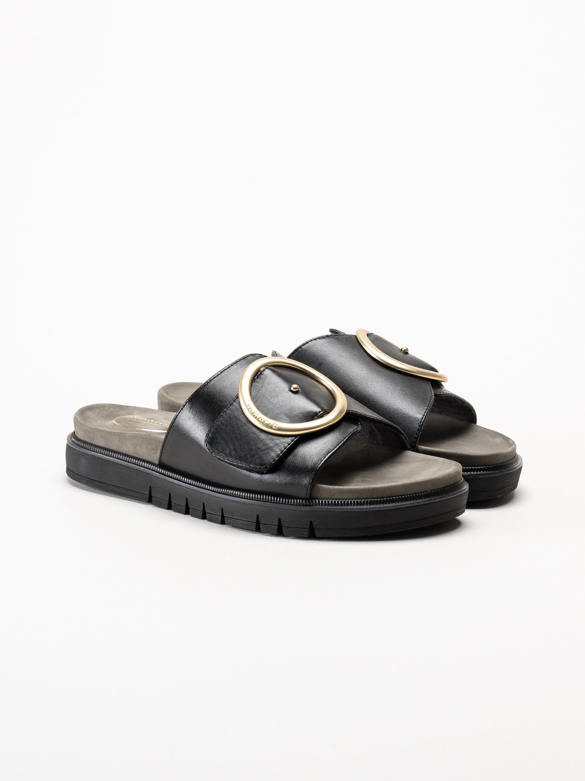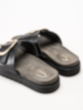 Den justerbara kardborreremmen gör sandalerna enkla att ta på och av samt ger en säker och personlig passform. Det guldfärgade spännet på ovandelen av remmen tillför en elegant detalj som lyfter helhetsintrycket.