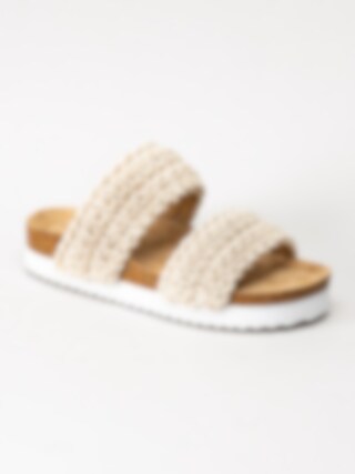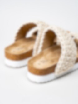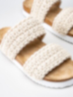 Duffy - Beige slip in sandaler i grovt virkad textil