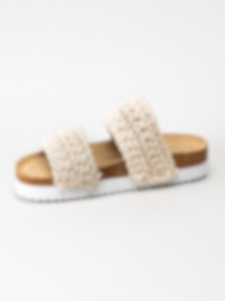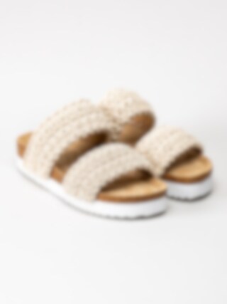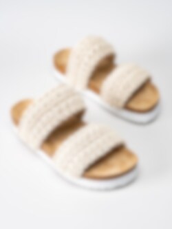 Beige slip in sandaler tillverkade i grovt virkad textil från Duffy. Trendiga slippers med lite högre sula för bra komfort. Sandalerna är små i storleken.