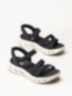 Invändigt är sandalen fodrad med textil, och innersulan i syntet med Skechers Goga Mat och Ultra Go-teknologi ger responsiv dämpning och hög komfort under hela dagen.