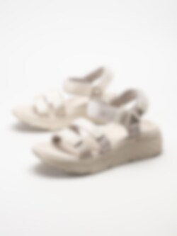 Beige remsandaler Max Cushioning Lured Natur i textil från Skechers. Härlig sandal med många justerbara textilremmar med kardborre för exakt passform. Tvättbara i 30 grader i maskin för att alltid ha en fräsch sandal. Innersula med Goga Mat komfortbädd som är stötdämpande och utrustade med NRT Natural Rocker Teknologi för en smidig övergång från häl till tå, du behöver inte kompromissa med komforten med dessa sandaler, de tål långa promenader. Max Cushion mellansula och yttersula med ett bra grepp. Bästa sandalen för ett aktivt liv både med passformen och komforten.