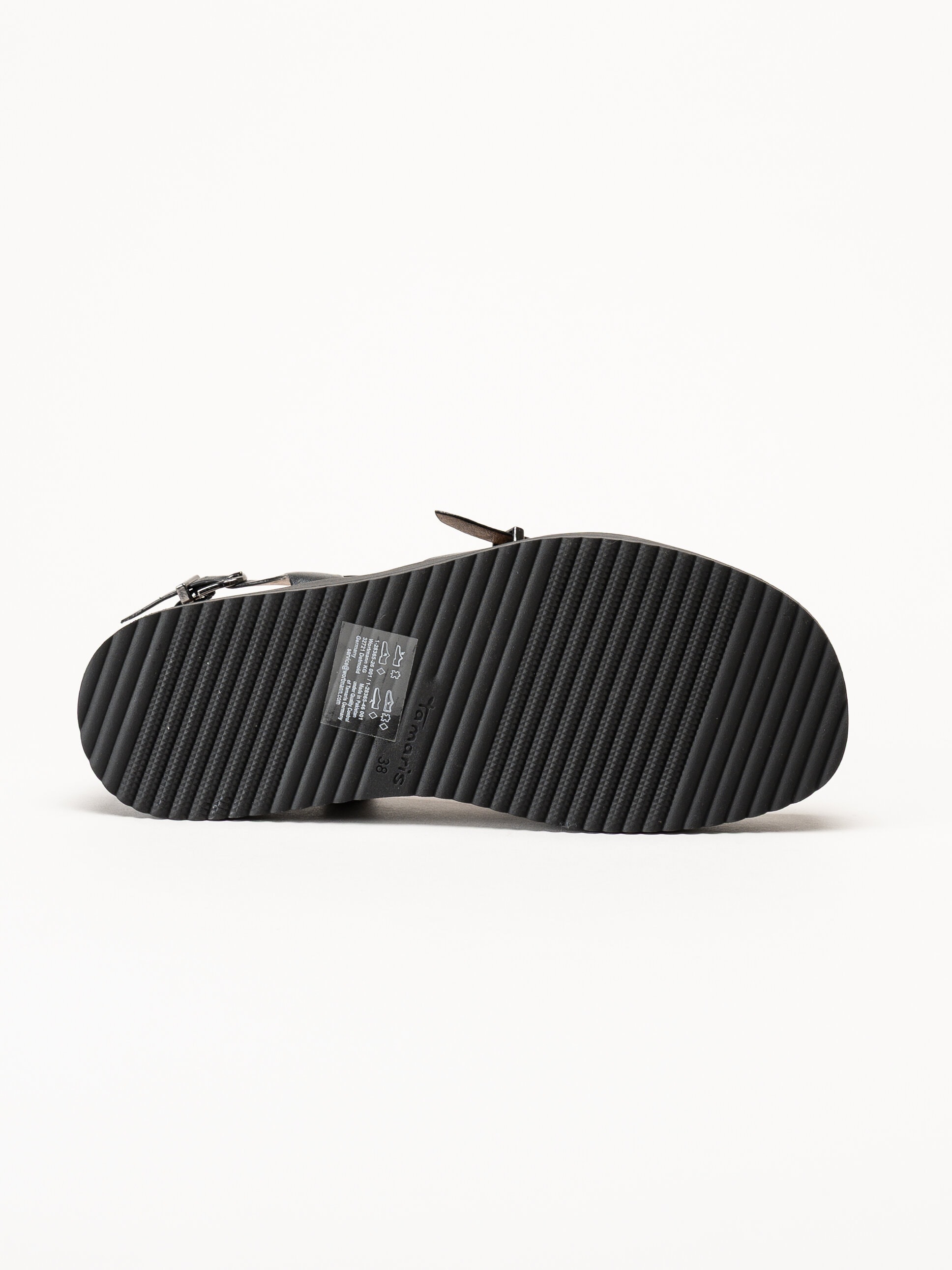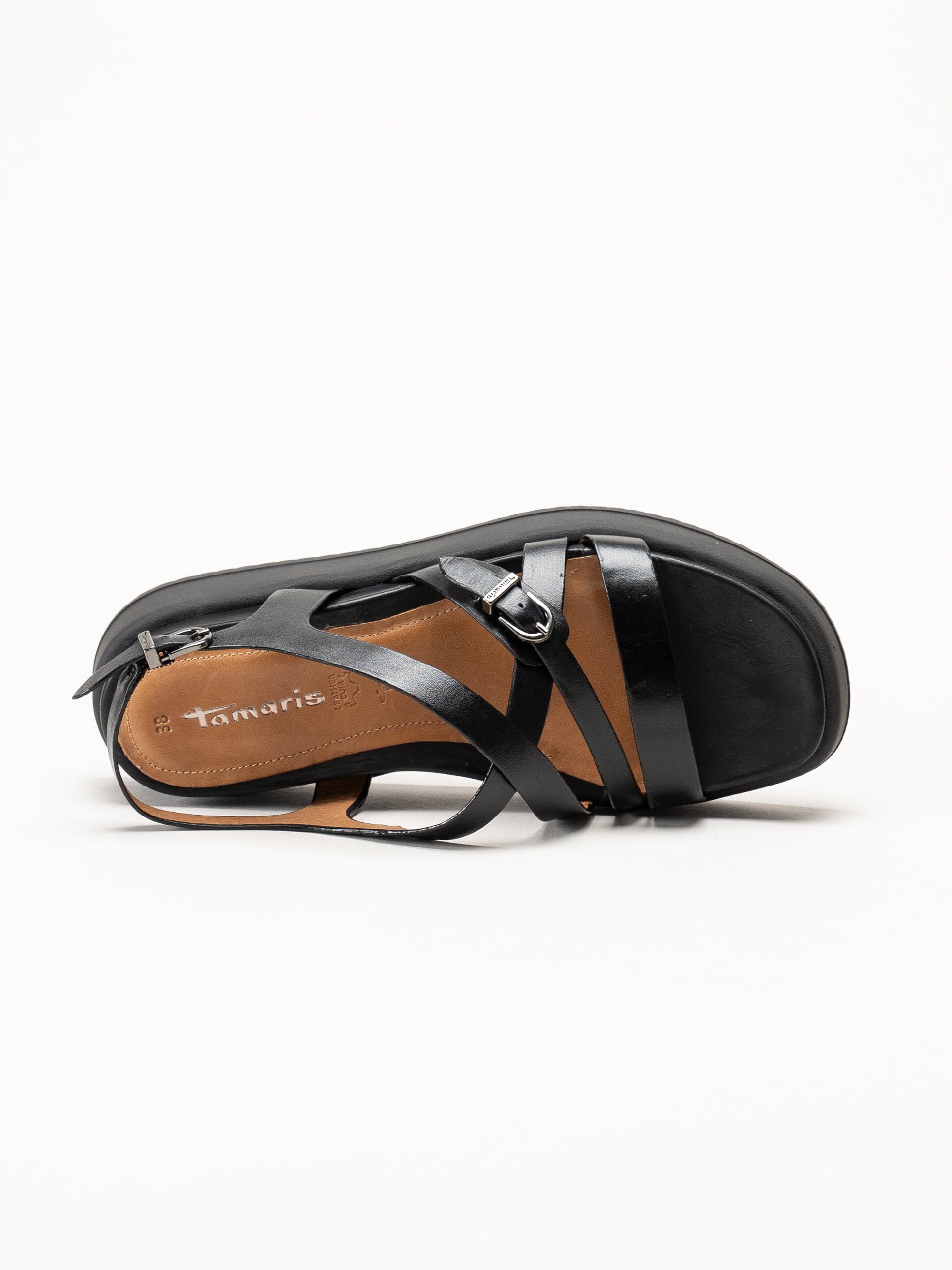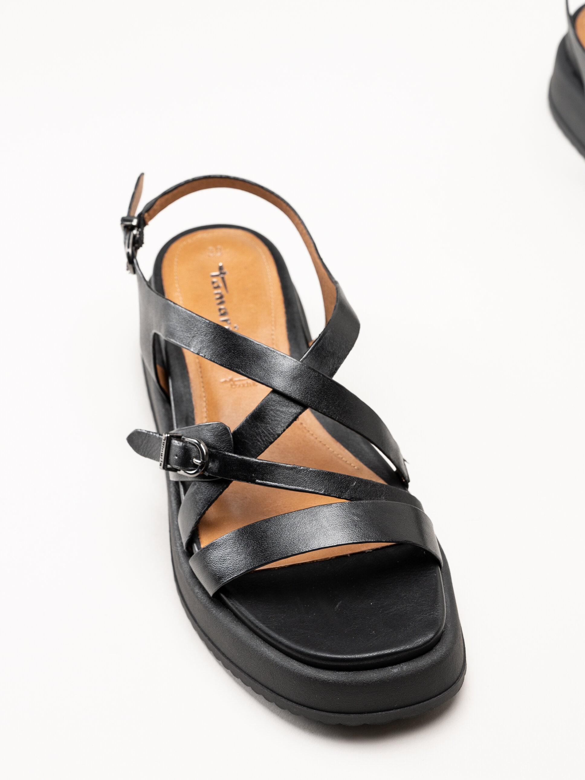 Svarta remsandaler från Tamaris med en stilren och luftig design som passar både vardag och sommarens varma dagar. Ovandelen är tillverkad i skinn som ger ett mjukt och följsamt uttryck med en tidlös känsla. Modellen har smala remmar som ger ett elegant intryck, samt justerbara remmar både fram och baktill som gör det enkelt att anpassa passformen efter foten.