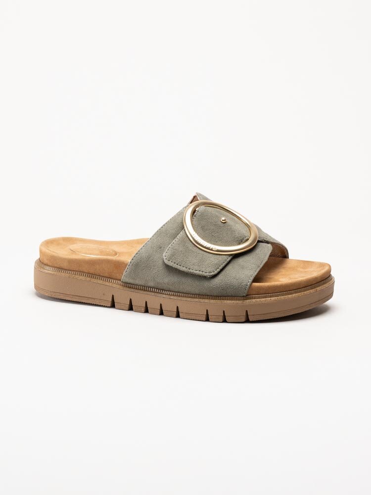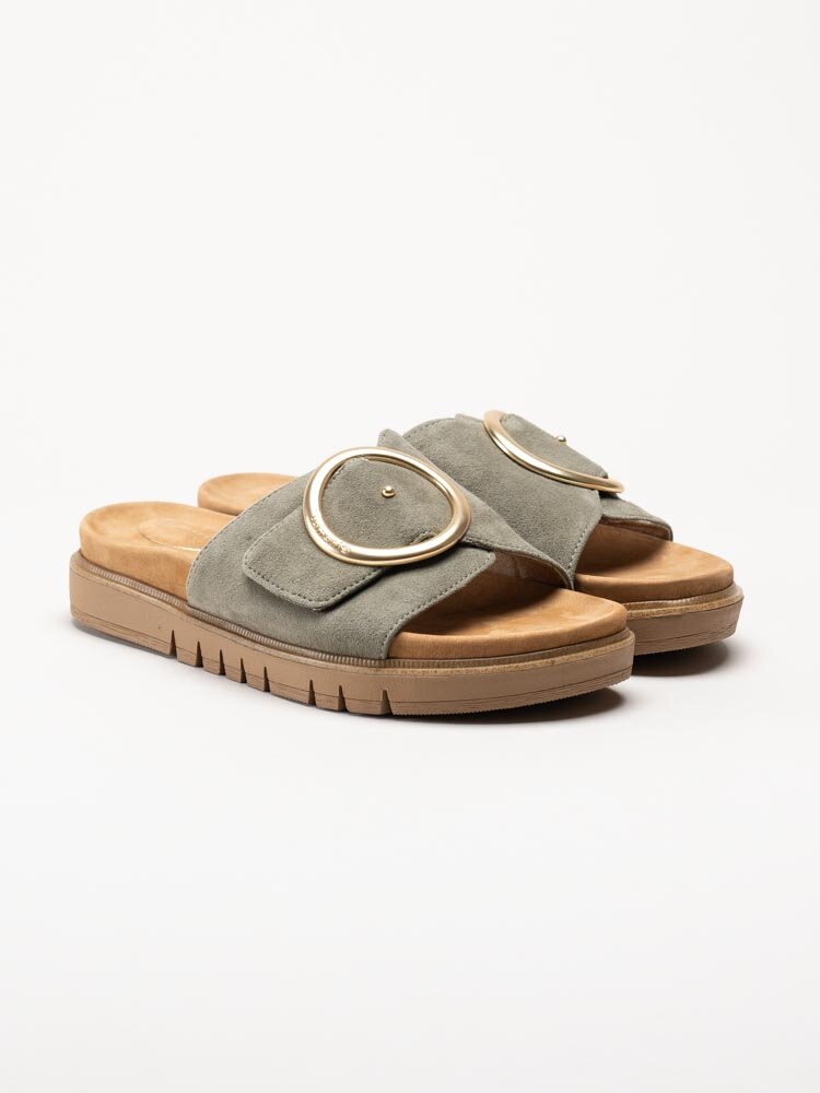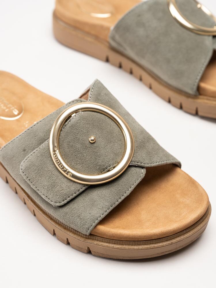 • Tamaris - Wide fit - Gröna slip in sandaler i mocka