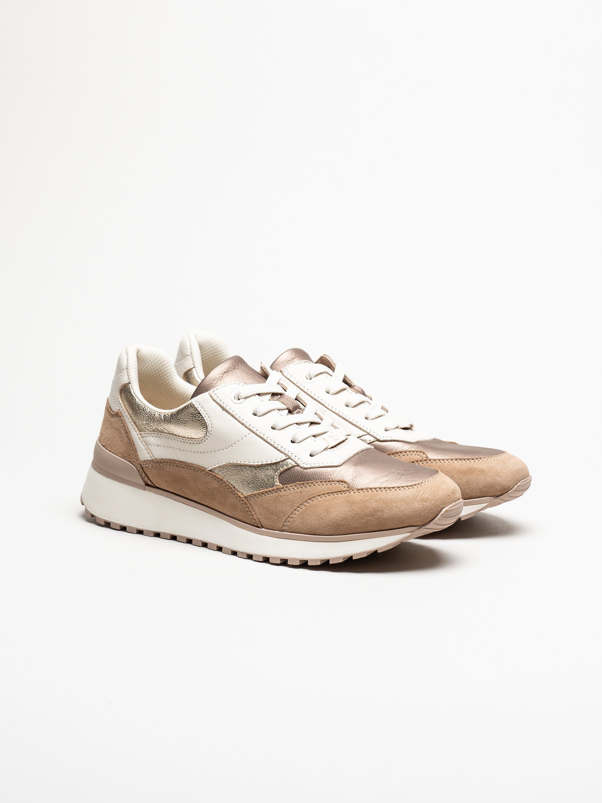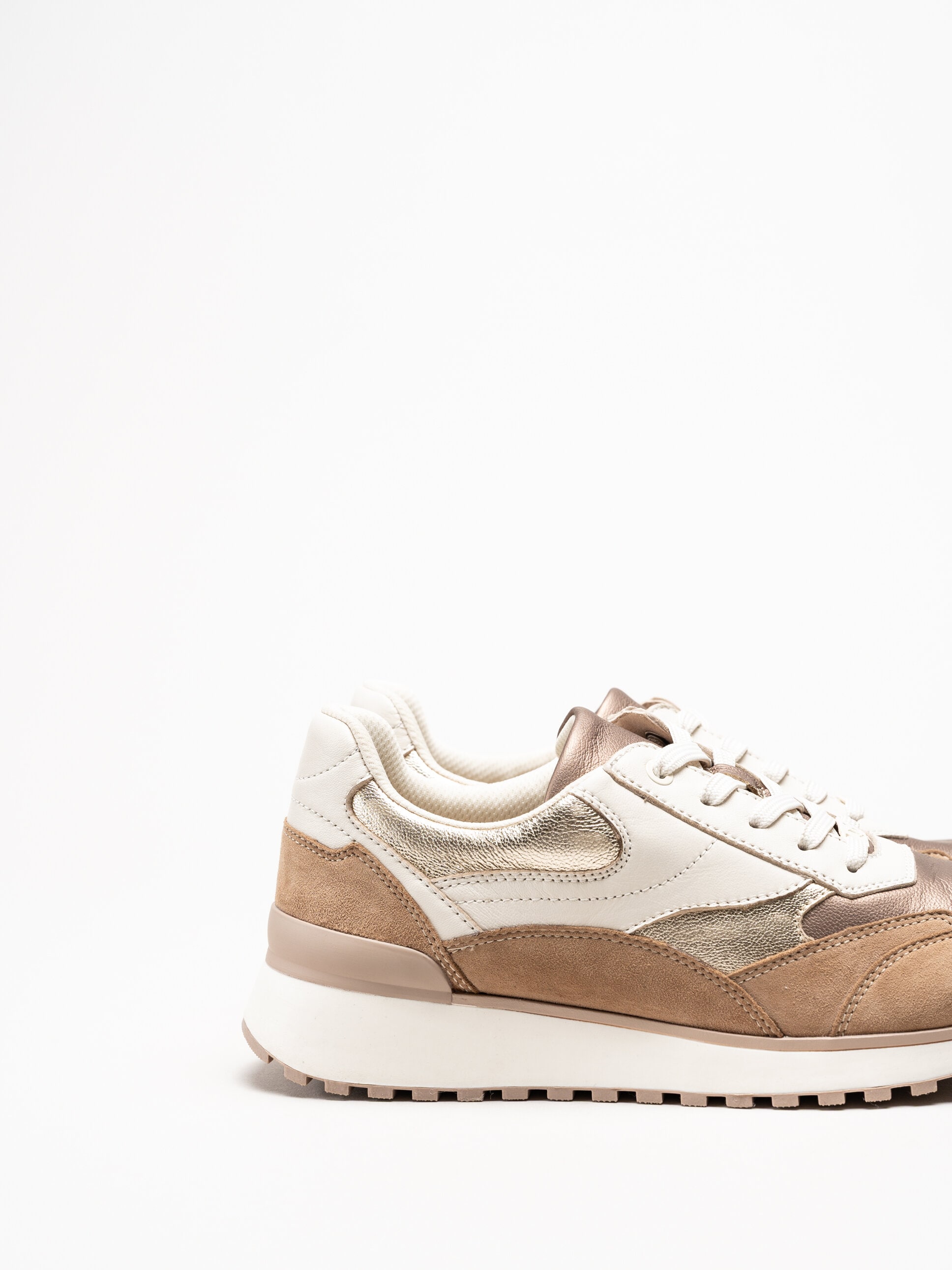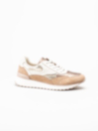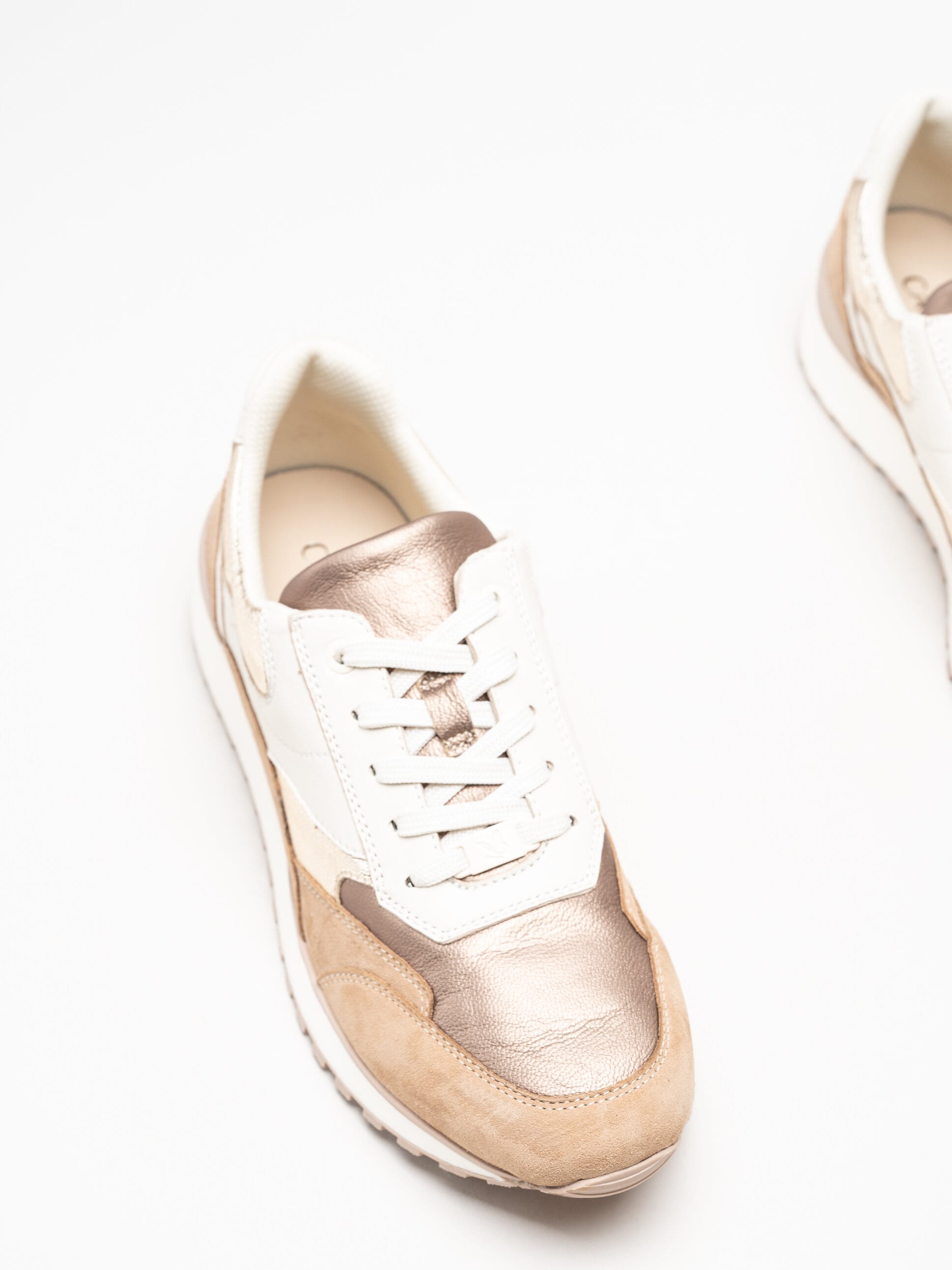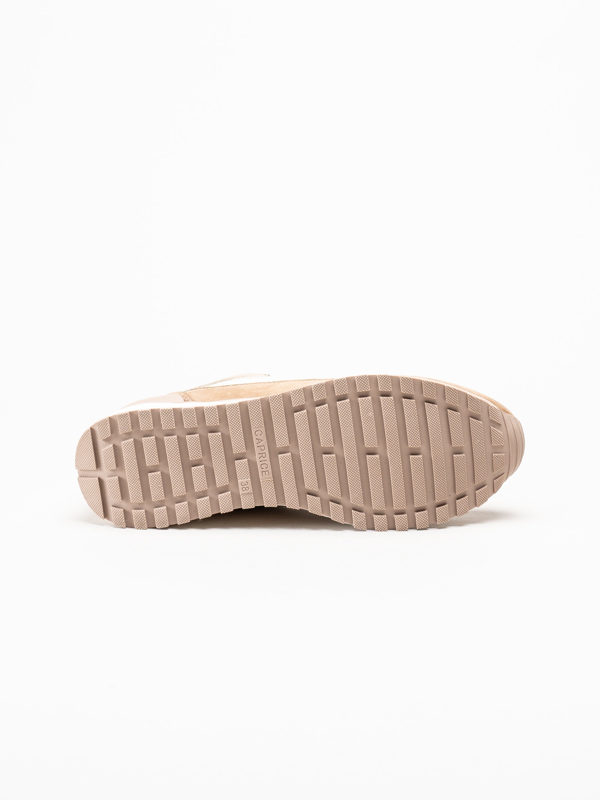 Beige sneakers i skinn från Caprice i färgen Sand. Skorna är tillverkade i en kombination av mjukt skinn och nubuck som ger ett stilrent och elegant uttryck med en modern sneakerdesign som passar perfekt för vardag och fritid.
