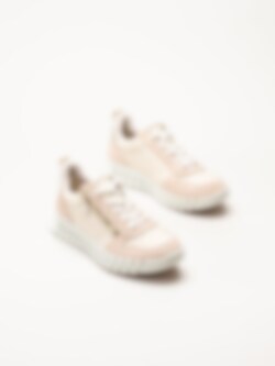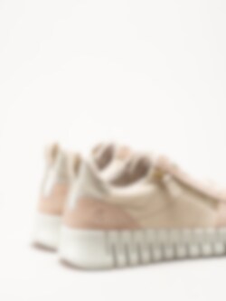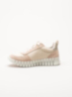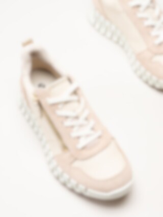 Ljusrosa sneakers i nubuck Gruuv W Side Zip Lace från Ecco i färgen RoseDust/PureWhiteGold. Skorna är tillverkade i en kombination av skinn och mocka som ger ett mjukt och följsamt uttryck med hög kvalitet och stil. Modellen har Dual Fit för flexibel passform, Fluidform-teknologi och Phorene-mellansula som tillsammans ger lätthet, stötdämpning och maximal komfort under hela dagen. Dragkedja på utsidan och snörning gör skorna både lätta att ta av och på samt ger en justerbar och stabil passform.