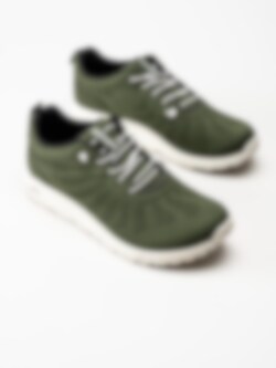 Gröna slip on sportskor Eli W RB9X Olive från Icebug i återvunnen textil. Mellansula BUGforce med bekväm, ergonomisk läst som ger bra dämpning. Smidig elastisk snörning vilket gör det lätt att bara dra på skorna. Yttersula tillberkad i RB9X-gummi som ger otroligt bra grepp på både torra och våta underlag. Sköna att promenera i med en luftig komfort, nästan som en sandal vilket gör den till en perfekt sko för alla promenader i vår och sommar.