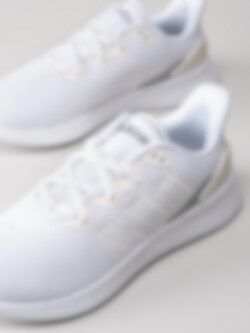 Vita sneakers i textil från Adidas. Kliv in i komforten och ta steget genom din dag med full självförtroende. Dessa Adidas löparinspirerade skor matchas med en Cloudfoam-mellansula där memory foam innersula är kuddmjuka. Broderade 3 ränder och färgpopp på hälen ger dessa sneakers en subtil men elegant finish. Tillverkad av minst 50 % återvunnet innehåll, representerar denna produkt bara en av Adidas lösningar för att hjälpa till att få slut på plastavfall.