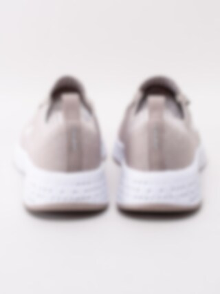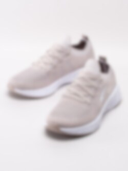 Beige slip on sportskor Destiny från Bagheera i stickad perforerad mesh. Lätta och luftiga sportskor som passar utmärkt till promenader som till att ha på gymmet. Enkla att trä på tack vare sitt elastiska insteg. Beige 4-håls snörning i bomull med svetsat snörparti som förstärkning och detalj. Panter-logotyp på utsidan och på plös. Hälla i nylon med logotyp på bakskaft som hjälpmedel vid påtagning. Textilfodrade och löstagbar innersula i textil. Vit svikande sula med beige paneler på yttersulan.