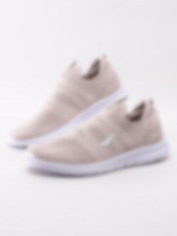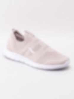 Beige slip on sneakers Pace från Bagheera i stickad mesh. Sköna sportiga promenadskor med mjuk Memory Foam skumsula som formar sig skönt efter foten. Vit svetsad panter-logotyp på utsidan som detalj. Elastiskt insteg med flik på plös och bakskaft i nylon som hjälpmedel vid påtagning. Textilfodrade med löstagbar innersula. Vit sula i syntet med konturerat mönster.