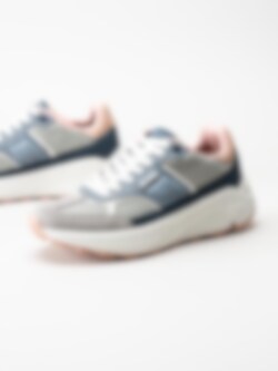 Blå flerfärgade sneakers i textil från Björn Borg. Sneakers från Björn Borg som har en ovansida i textil, mocka och syntet. Skorna har en logotyp på plösen och en yttersula i gummi. På ena sidan finns ett silverfärgat emblem och insidan är fodrad i textil.