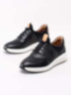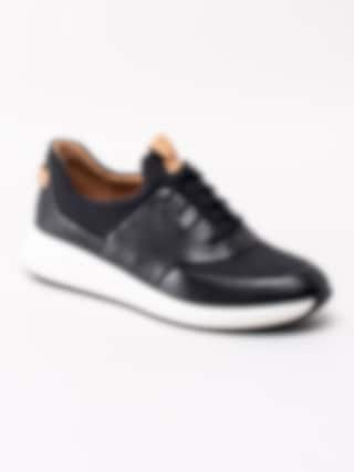 Clarks - Un Rio Lace - Svarta slip on sneakers i skinn och meshtyg