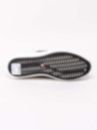 Svarta slip on sneakers Un Rio Lace från Clarks tillverkade i skinn och meshtyg. Enkla att trä på tack vare sin strumpliknade modell. Svart 4-håls snörning i bomull för att göra det möjligt att justera till en smidigare passform. Beige läderbit på plös och hälclip som detalj. Vit sportig sula med klack på ca 4 cm med platå på ca 2.5 cm.