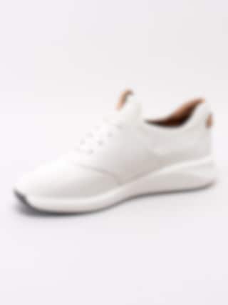 Clarks - Un Rio Lace - Vita slip on sneakers i skinn och meshtyg