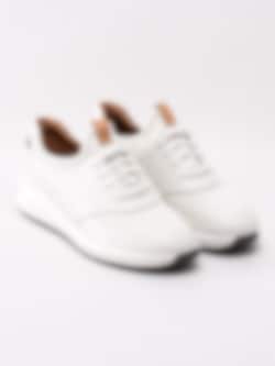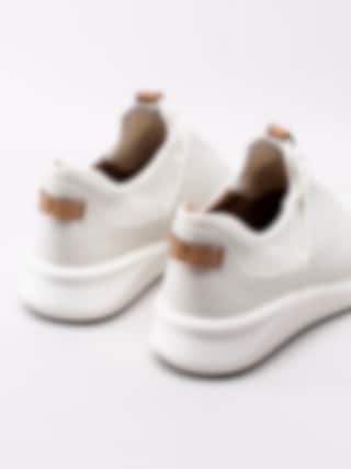 Vita slip on sneakers Un Rio Lace från Clarks i skinn och meshtyg. Enkla att trä på tack vare sin strumpliknade modell. Vit 4-håls snörning i bomull för att göra det möjligt att justera till en smidigare passform. Brun läderbit på plös och hälclip som detalj. Vit sportig sula med klack på ca 4 cm med platå på ca 2.5 cm. Mörkgrå yttersula i gummi.