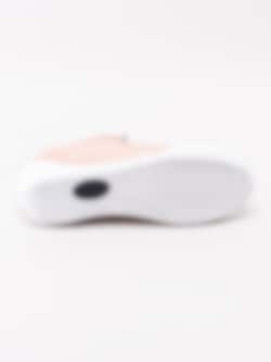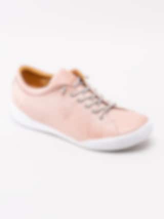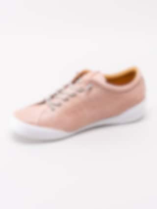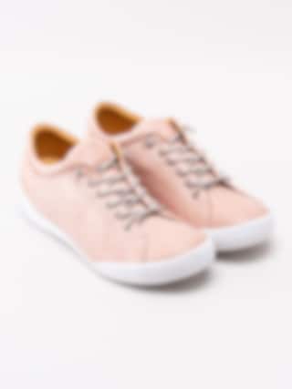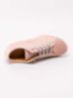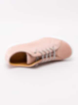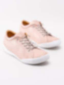Ljusrosa sneakers Lantana från Dasia tillverkade i mjukt skinn med inbyggd kilklack. Sömmar som detaljer. Präglad logga på plös. Ljusgrå rund 6-håls snörning i resår med öljetter i silver som öppning. Snörningen ska inte knytas utan den hjälper att hålla foten på plats. Brunt foder och löstagbar innersula i skinn med präglad logga i hälen. Låg klack på ca 3.5 cm. Vit yttersula i syntet med mönster och konturerad logga.