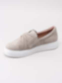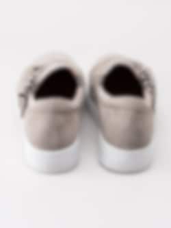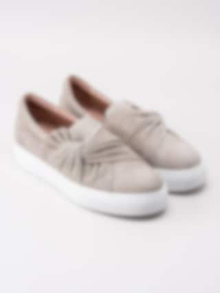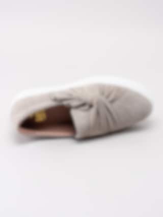 Beige sneakers Starlily Bow från Dasia tillverkade i mocka i en slip on modell. Tvinnade läderband vi framparti som detalj. Präglad logga på utsidan av bakparti. Präglad logga på bakparti av sulkant. Resår på in- och utsidan för lätt på- och avtagning. Rosa foder och mjuk innersula i skinn med sömlös logga i guld. Vit platåsula på ca 3 cm med yttersula i gummi med präglad logga.