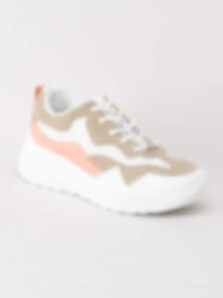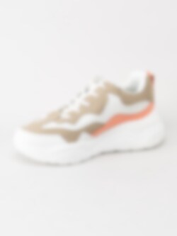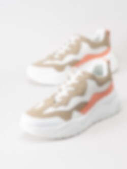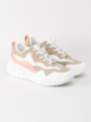 Beige platåsneakers från Duffy i syntet och textil. Tuffa retroinspirerande sneakers med korallfärgade detaljer.